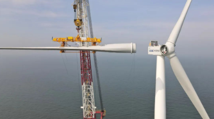 6月21日,随着最后一颗叶片螺栓预紧到位,山东能源集团渤中A场址50万海上风电场完成首台机组吊装,标志着中国船舶集团旗下中国海装为平价海上风电定制化设计的首款平台机型——H23X平台机组实现量产装机。