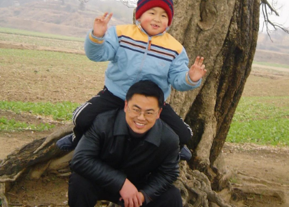 △与儿子姚靖维在乡下老家