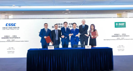 6月13日,中国船舶集团旗下中船动力(集团)有限公司与巴斯夫欧洲公司,在2023年上海国际碳中和技术、产品与成果博览会上,正式签署关于共同开发船舶碳捕集系统战略合作谅解备忘录。此次合作将发挥中船动力在船舶动力研发、制造与服务领域的领先优势,以及巴斯夫前沿专业的气体处理技术,加速开展船舶碳捕集的商业化应用,携手助力全球航运业绿色发展。