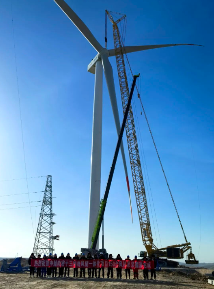 12月24日12时06分,随着最后一台风电机组的叶轮与机舱成功对接,中国船舶集团旗下中船风电新疆哈密百万千瓦风储一体化项目圆满完成全部150台机组吊装,为后续推进并网发电奠定了坚实基础。