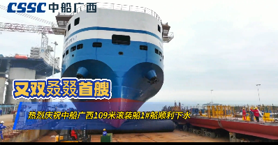 3月12日,由中国船舶集团广西公司为天津德赛海洋工程平台装备有限公司建造的109米滚装船-1#船在钦州基地顺利下水。该船总长109米,型宽22.2米,设计航速12节,采用双柴油机驱动,配双桨、双舵,交付后主要航行于印度尼西亚各岛屿之间,用于装载汽车和其他非禁运类货物,可一次装载不少于800辆汽车。