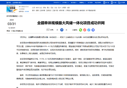 近日,中国船舶集团旗下中船科技子公司中船风电和哈密国投联合开发的新疆哈密百万千瓦风储一体化项目首台风机成功并网发电,央视《新闻联播》、新华网和《新疆日报》等纷纷关注报道。