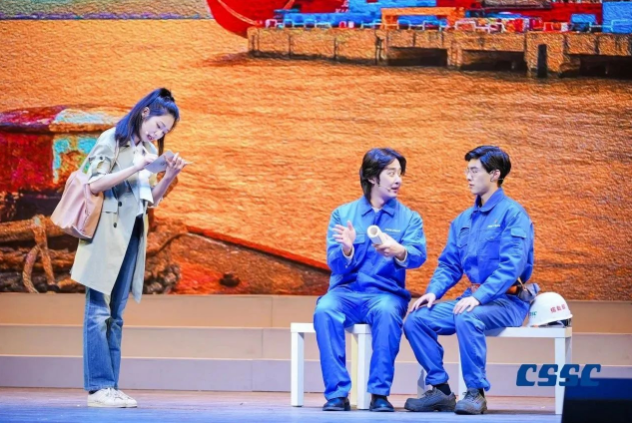 现场,来自中国船船集团江南造船(集团)有限责任公司、沪东中华造船(集团)有限公司、上海外高桥造船有限公司、中船动力(集团)有限公司和中国船舶集团公司第七〇二研究所的青年职工将真实工作案例与理论原文结合,将“发展新质生产力”作为工作方向与指引,将他们的造船故事亲身演绎。故事从《船舶青年说》起航,共讲述了五大篇章,分别为江南造船如何延续百年初心、沪东中华造船LNG船毫厘铸匠心、七〇二所从“蛟龙”号到“奋斗者”号将深潜进行到底、外高桥造船“爱达•魔都号”大型邮轮“4个120天”的极限挑战、江南造船“钢铁心脏”工程师攻克大型作战舰建造的不凡创新路,台词铿锵有力、情感真挚流淌,绘就了一幅精彩的中国船舶梦画卷。