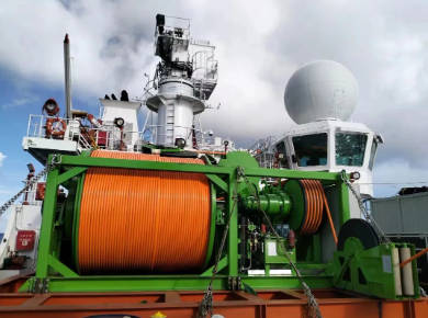 该绞车采用变频驱动,安全工作负载30吨,容绳量6500米。在研发设计过程中,七〇四所对绞车系统的各项性能指标和功能特性不断优化迭代,并在自动化、电动化和可靠性等方面进行了全面的优化升级,使该系统具有驱动效率佳、承载能力强、自动化程度高等特点。同时,该绞车采用集成式设计方法,将牵引、储缆、排缆等各装置,及电控、液压各系统集成安装于整体式框架内,可满足多平台机动搭载的需求。
