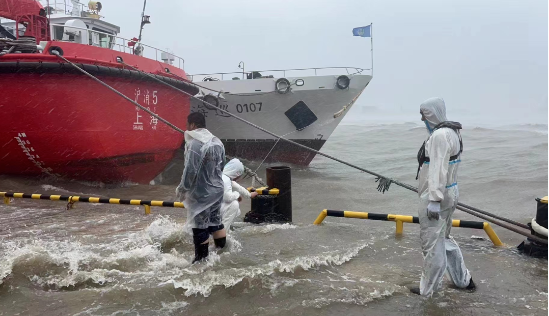 沪东中华及时召开防汛防台专题部署会,公司领导深夜坐镇三大指挥部指挥防汛防台,34支应急队伍总计1596人24小时值守,10艘拖轮时刻待命。台风来临前夕,沪东中华紧急疏散施工单位人员1459人,安置545人。各部门组建应急抢险小分队,中层干部带队上船值守,按照“一船一策”安全要求,落实船舶防汛防台措施,备好应急物资,确保防台工作取得了“零事故零险情”的胜利。