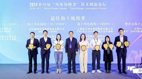 开年即“开跑”,展示新“风貌”。1月9日, 2024(第四届)“风电领跑者”技术创新论坛暨颁奖盛典在北京成功举行,活动共评选出“风电领跑者”最佳陆上机组奖、最佳海上机组奖、最佳零部件产品奖、最佳服务产品奖和年度最佳创新奖五类大奖,中国船舶集团旗下中船科技子公司中船海装H305-25MW海上风电机组、H220-6.XMW陆上风电机组凭借其创新设计和优异性能分别斩获了“最佳海上机组奖”和“最佳陆上机组奖”。