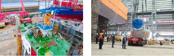 “梦想”号配备的7台推进器中,3台全回转伸缩推是黄埔文冲迄今总成过的最大伸缩推,并且建造过程中伸缩推需要进行全程升降试验,升降高度差达4.3米。完成试验的伸缩推总段重量超过了船厂龙门吊最高900吨的起重能力。“梦想”号工艺负责人冯仕清创新性地提出了采用龙门吊和履带吊联合吊装的方法,最终保证了伸缩推的成功安装。