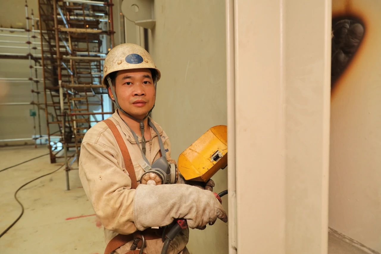 为了更好地掌握超厚板的焊接,搭载一部支持大合拢一班的梁金华和同事们一起进行了专门的焊接培训。有趣的是,老师谢祖靠、学生梁金华,都是来自该所技校的毕业生。既是师兄弟、又是师徒,这在黄埔文冲的工人队伍当中并不少见。