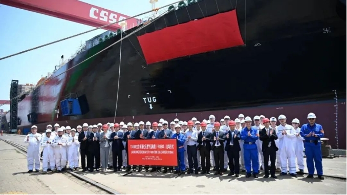 17.4万立方米LNG运输船“远海奋进”号(Ocean Inspiration)在沪东中华新厂区正式命名。
