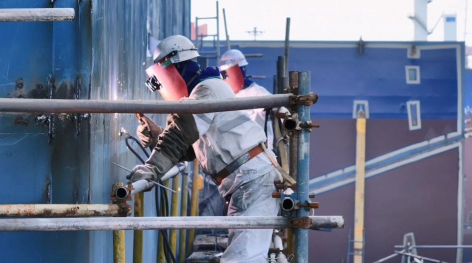 如今的江南造船宽敞明亮、干净整洁,车间里、船坞内、码头上……身着不同颜色工装的作业人员在各自岗位上有序地工作。厂区内悬挂着显眼的“担高质量发展的先行者 当传统制造业的颠覆者”标语,以造船界优秀前辈命名的厂区道路两旁悬挂着江南造船科创大会的优秀获奖者们的海报,新旧交替的一代代造船界前辈激励着每一位江南人不断向前。