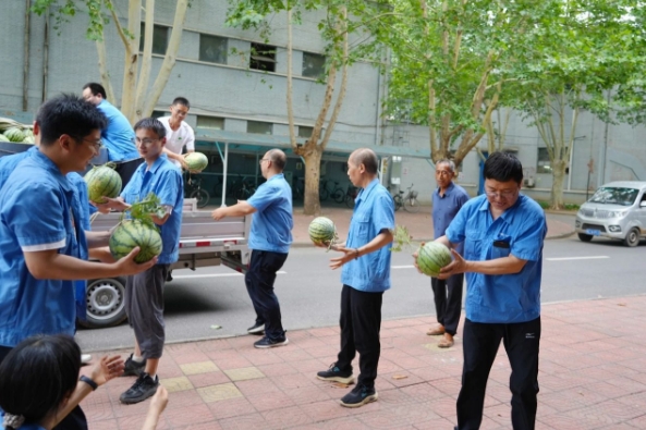 防暑降温的药品,冰凉解渴的饮品,又大又甜的西瓜,干净凉爽的午休场所……中船集团旗下中南装备、中船陕柴、中船绿洲、中船河柴多措并举为一线员工撑起关爱“遮阳伞”。