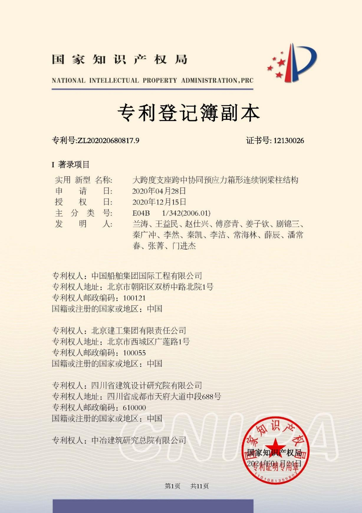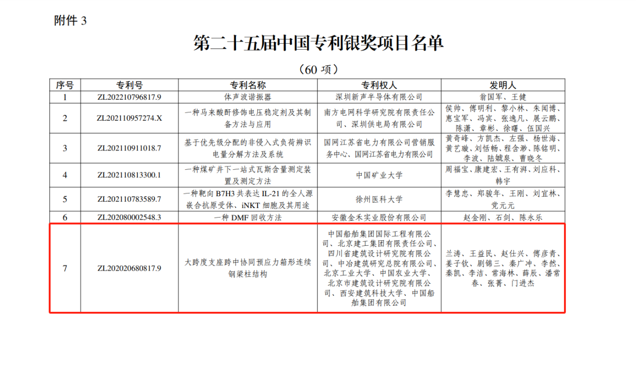 今年6月,国家知识产权局公布第二十五届中国专利奖授奖决定,由中船集团旗下中船国际工程主导申报的专利《大跨度支座跨中协同预应力箱形连续钢梁柱结构》(专利号:ZL202020680817.9)荣获本届中国专利银奖。该奖项由国家知识产权局与世界知识产权组织联合设立,是我国专利领域的最高荣誉。今天,让我们走进中船国际工程钢结构工程设计与研发团队,聆听他们的奋斗故事。
