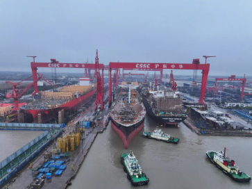 2月26日至27日,沪东中华新年开工首周捷报频传,2天内双坞联动,顺利实现3艘LNG船密集出坞,彰显强大建造实力。随着春节假期落幕,沪东中华迅速进入复工状态,全员出勤率近97%,各大生产区域再现热火朝天的实干景象,奋力夺取新年生产“开门红”。