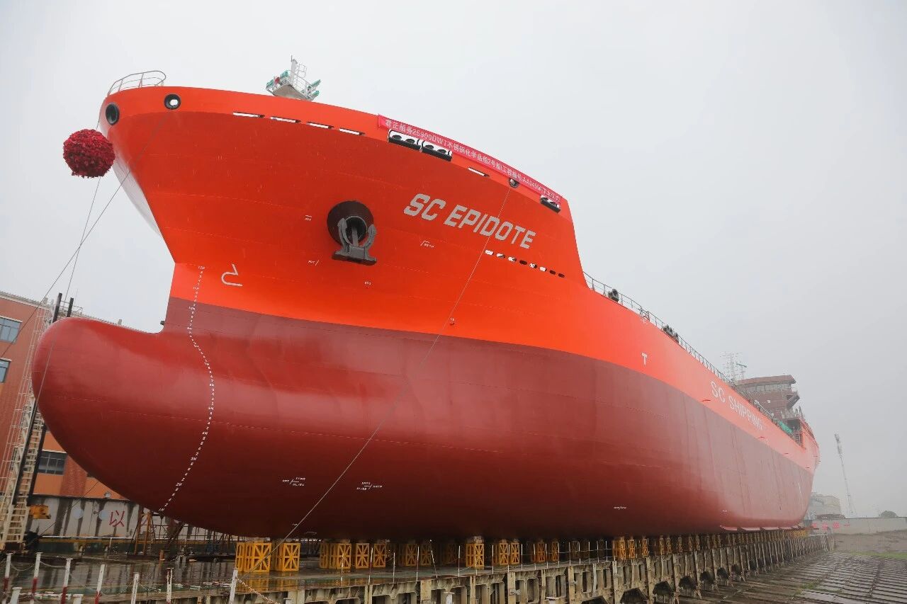 3月16日,武昌造船为上海君正船务有限公司建造的25900载重吨不锈钢化学品船2号船(系列船6号船)顺利下水,在高端不锈钢化学品船领域的批量化、节拍化建造能力迈上新台阶。该型船拥有10对液货舱和1对污油舱,兼具低能耗、高载货量与高度智能化优势,主要用于化学品、成品油运输。