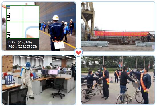 一季度要完成8个生产大节点,2月份要交付广东省60米B型海事船。从2月3日开始就组织开展海事船的涂装美化、首尾处理等工作;严格落实上船前体温检测,合理安排各区域施工人数,做到分散作业;组建“抗击疫情保交船”微信群,重要事项在线上讨论协商并落实,确保月底交船。重点产品H1218即将试航,生产任务较重,但受疫情影响,湖北地区厂家不能到厂报验,项目组策划将交船工作工序前移,确保完整性出航,返航后即达到验收状态。
