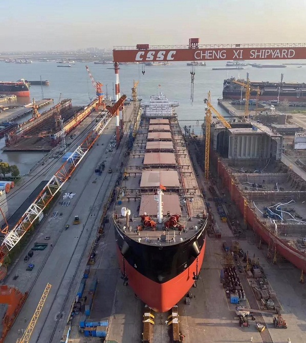 4月7日,中国船舶集团旗下中船澄西为香港华光船务建造的42号8.2万吨散货船,在中船澄西扬州公司下水。该船下水整体完整性较好,船体工程、轮机工程、电气工程等多项工程基本完工,为水下全船设备安装调试打下了坚实基础。