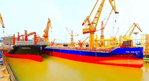 4月10日,中国船舶集团旗下黄埔文冲为希腊COSMOSHOP公司建造的1500TEU.GO集装箱船4号船H5655船以及为新加坡太古公司建造的2350TEU.C集装箱船4号船H5529船