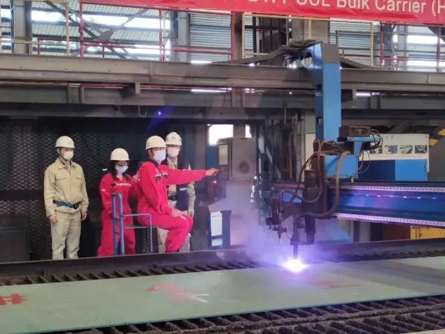 为按期实现建造目标,中船澄西成立了22号8.2万吨船建造临时党支部和临时团支部,制定党建带团建专项攻坚计划,发挥党员和青年团员旗帜作用。 在船台搭载过程中,中船澄西克服疫情期间关键船用设备到货晚、人员到位少等困难,齐心协力启动建造“快进键”,不断提高生产效率。