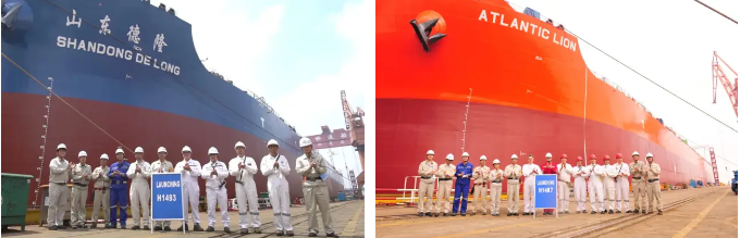本轮出坞的三艘船舶均配备脱硫脱硝装置,符合最新的环保要求,能适应多种航线。三船机舱系统出坞完整性有较大提升,其中,H1487船和H1493船从入坞搭载到半船起浮仅用37天、从半船起浮到整船出坞用时40天,顺利实现船坞“双40”目标。
