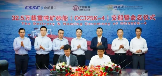 继“云交船”3艘32.5万吨系列矿砂船后,中国船舶集团旗下武船集团北船重工于8月28日上午分别举行了32.5吨矿砂船4号的交船暨命名仪式和10号船的“云命名”仪式。