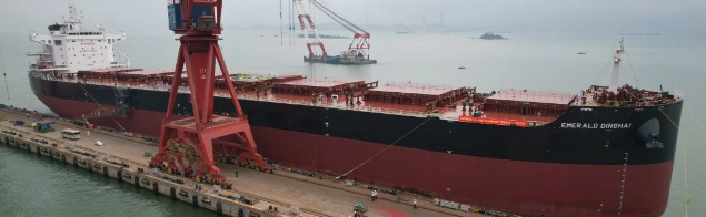 2月20日,中国船舶集团旗下黄埔文冲联合中船贸易建造的85000吨散货船“EMERALD SHENGSI(翡翠嵊泗)”号举行交船仪式。