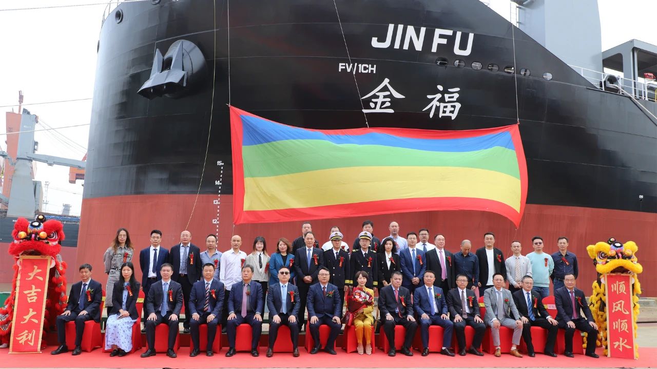 近日,为交银金融租赁有限责任公司建造的7号62000吨重吊多用途船“JIN FU”号较合同期提前81天命名交付。该船是为交银金租批量建造12艘62000吨重吊多用途船中的第三艘,也是目前全球载重吨位最大的重吊多用途船。