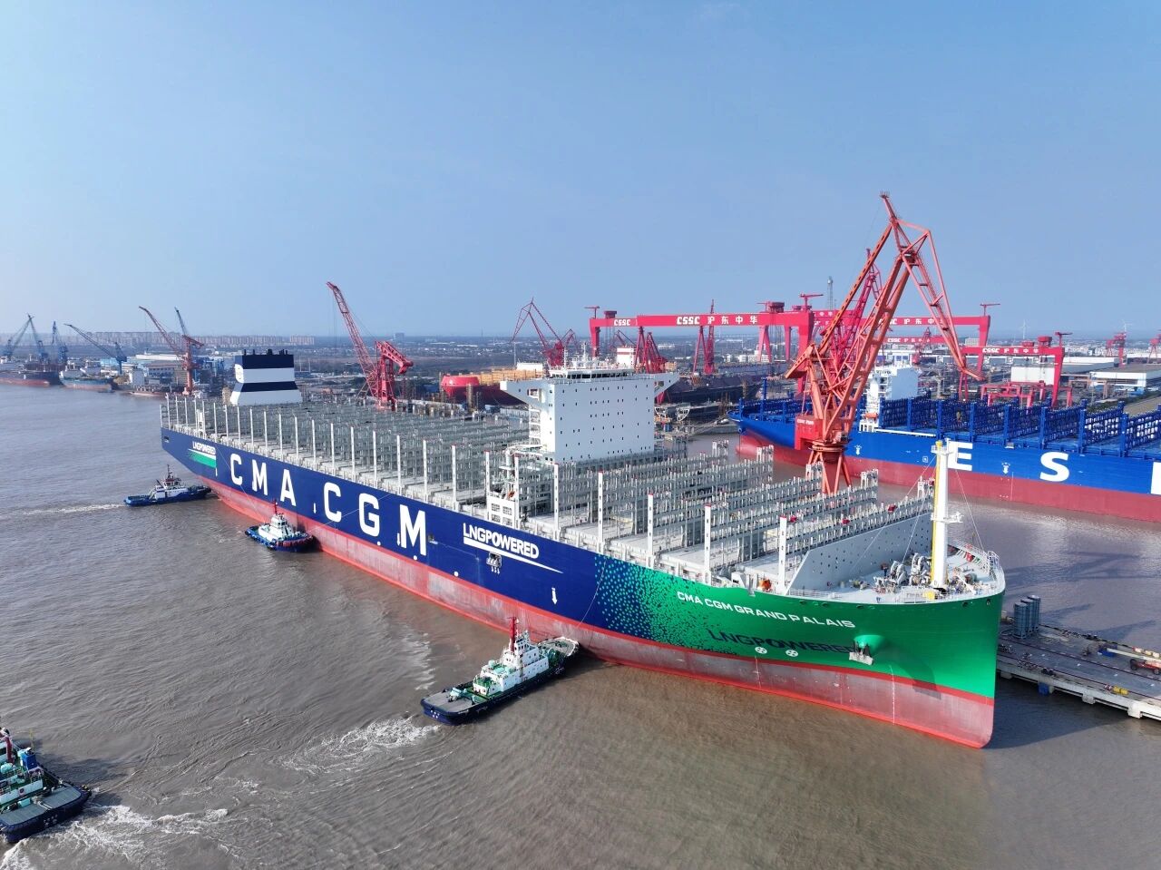 3月17日,中船集团旗下沪东中华建造的24000TEU液化天然气(LNG)双燃料动力集装箱船“达飞 巴黎大皇宫”号,提前7个半月命名交付。该船是沪东中华为法国达飞集团建造的第20艘大型集装箱船,为中法两国在绿色航运与高端制造领域的深度合作增添新的典范。