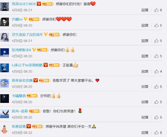4月6日,人民日报微博对武汉首对新冠疫苗志愿者夫妇张晶、赵威结束医学隔离回家的消息进行了报道,为他们点赞。