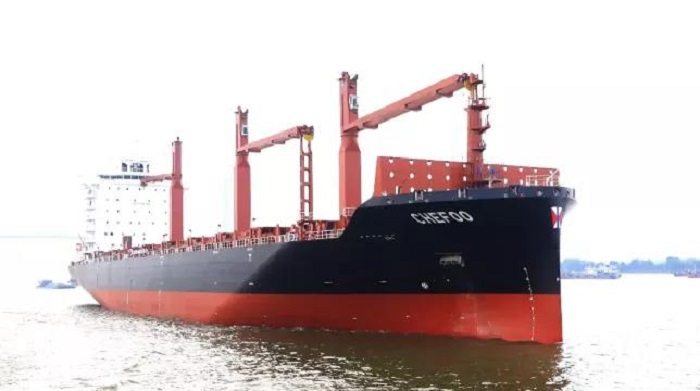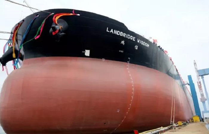 △ 中船澄西建造的7万吨木屑船顺利下水(点击图片查看新闻详情)