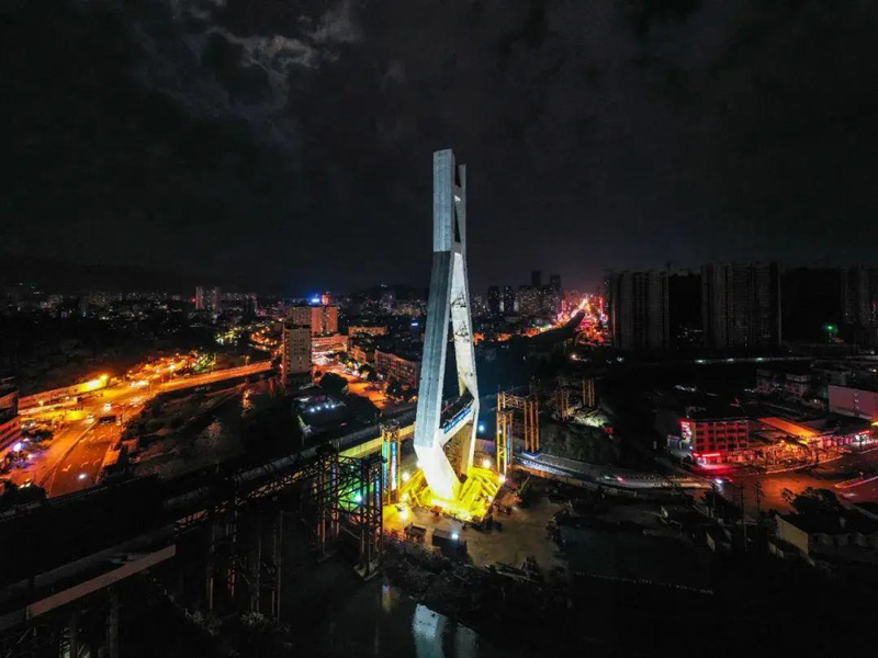 4月10日龙岩大桥主塔转体完成