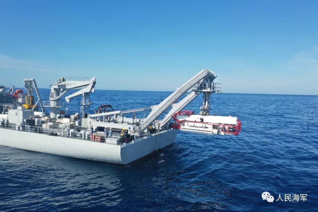 近日,北部战区海军某防救支队在南海某海域开展某型深潜救生艇500米深潜专项试验。