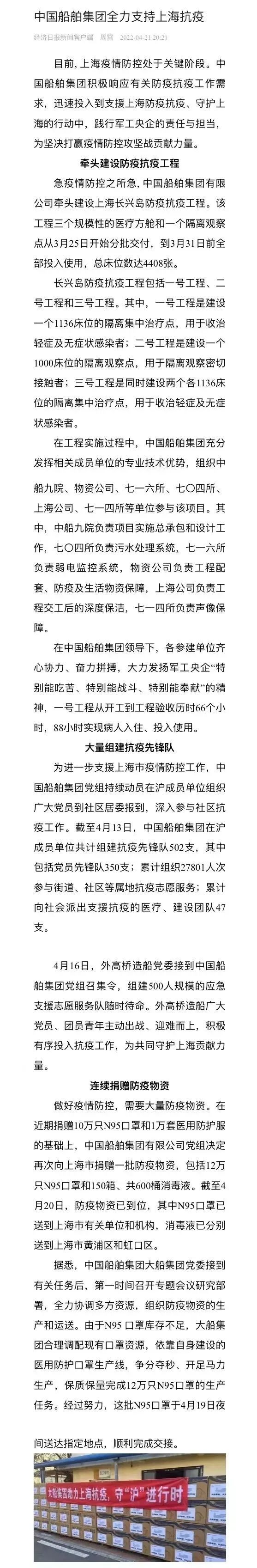 中国船舶集团积极抗疫,同心守“沪”引关注
