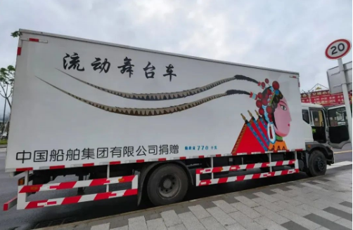 在中国船舶广场揭牌仪式现场,一辆印有中国船舶集团有限公司捐赠的流动舞台车格外醒目,工作人员告诉记者:“过去送文化下乡巡回演出,由于需要不断改变巡演地点,刮风下雨就只能‘望雨兴叹’,现在有了移动舞台车,10分钟内就将所有设备安装到位,并且车内预留了灯光、声音、字幕、幕布、电源等接口,具有很好的扩展性,车上的舞台满足了专业演出的需求,可以让整个演出更具表演性,舞台车可以直接开进百姓家,乡亲们家门口就能看表演,感谢中国船舶集团让文化下乡不再难。”勐腊县民族文化工作队队长安飘感激地说:“感谢中国船舶集团对边疆文化的关心,我们一定会守好文化边疆!”。
