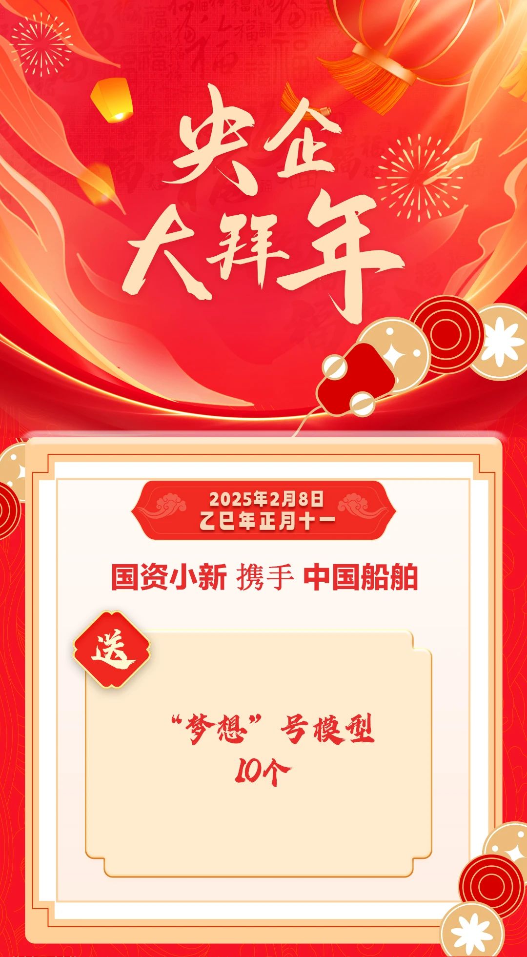 今天“国资小新”联合中国船舶抽取10位幸运粉丝,送上“梦想”号纯手工合金模型。