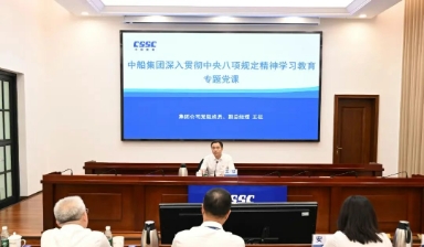 按照党中央统一部署,根据中国船舶集团有限公司党组学习教育工作安排,七一前后,中船集团党组成员以分片区覆盖、现场+视频的方式讲授深入贯彻中央八项规定精神学习教育专题党课,围绕学习习近平总书记关于加强党的作风建设重要论述的收获感悟,贯彻落实中央八项规定精神的成效经验,违反中央八项规定精神的危害,整改整治问题、推动改进作风的实际举措等方面进行深入交流。