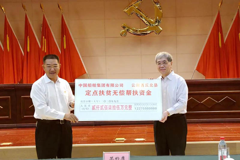 在中国船舶集团•丘北县定点扶贫工作座谈会上,集团公司和丘北县举行了无偿帮扶资金捐赠仪式、签署了消费扶贫框架协议,集团公司产业扶贫基金运营公司太证资本与产业扶贫基金投资标的公司立达尔签订了投资协议。