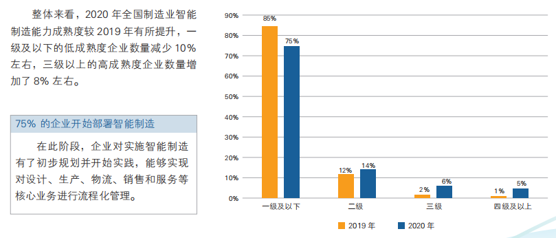 近期,中国电子技术标准化研究院根据《智能制造能力成熟度模型》的宣贯、实施和企业自评估情况,形成并发布了《智能制造发展指数报告(2020)》,供社会各界参考。