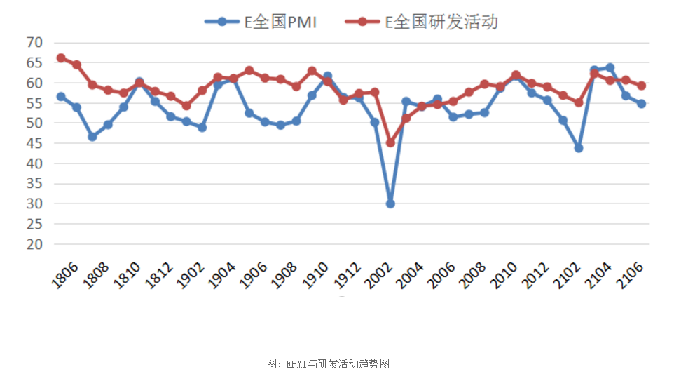 中采咨询于颖认为:“本月新兴产业EPMI回落2个百分点至54.7,近三个月来合计回落幅度类似于周期下行的2018和2019年;绝对值仍高于近年均值2.9个百分点,新兴产业仍扩张但增速放缓。各正向指标均有不同程度回落。生产量、新订单双双回落,分别为57.5和56.6,淡季叠加看弱后市,整体需求与开工均有明显放缓。全国就业指数环比微幅回升,是唯一回升的正向指标,新能源产业受碳中和政策带动而持续扩张是关键结构因素。采购量与自有库存跟随产需回落,企业扩张意愿收缩;用户库存继续回落至于中低位置,一是因淡季表现,二是因受价格压制企业主动降低库存水平。购进价格中幅回落,幅度为今年单月最大,一是政策要求坚决控制大宗商品价格,二是需求回落,导致价格下行;但是价格仍处于近年高位,对需求端仍有抑制。销售价格也有同步回落。出口指数环比回落3.4,进口指数环比回升2.9,其中出口指数连续2个月回落,为正常淡季表现。贷款难度指数连续2个月回落,低于可比年份均值5个百分点,融资环境仍较宽松。研发活动有所回落,新产品投入微幅回升,绝对值都低于类似年份均值。需求尚可,但企业预期较弱,减少了投入和融资活动。南亚疫情传入广东,增加后市的消极因素,除个别行业外预计下月动能继续减弱。”