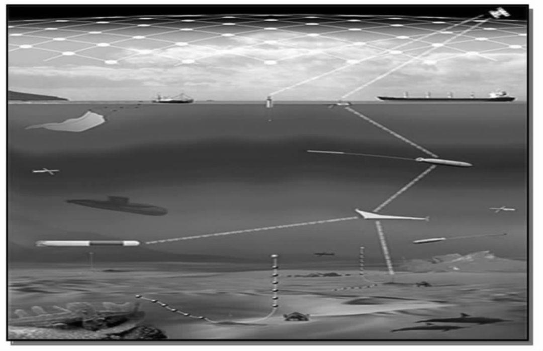 近年来,尽管水下信息感知和传输技术有了长足的发展,但由于海洋环境极为复杂,水下战场相对于水面和空中,透明度仍然不高。以水下为主要战场的潜艇,具有隐蔽性好、机动范围广、打击威力大等显著特点,仍然是世界各国包括美海军重点的防御对象。为此,以美海军为首的主要国家海军积极推进水下信息网络建设,通过网络实现水下各种预警探测节点之间以及节点与其他维度平台之间的网络化信息联接,大力提高反潜作战能力。